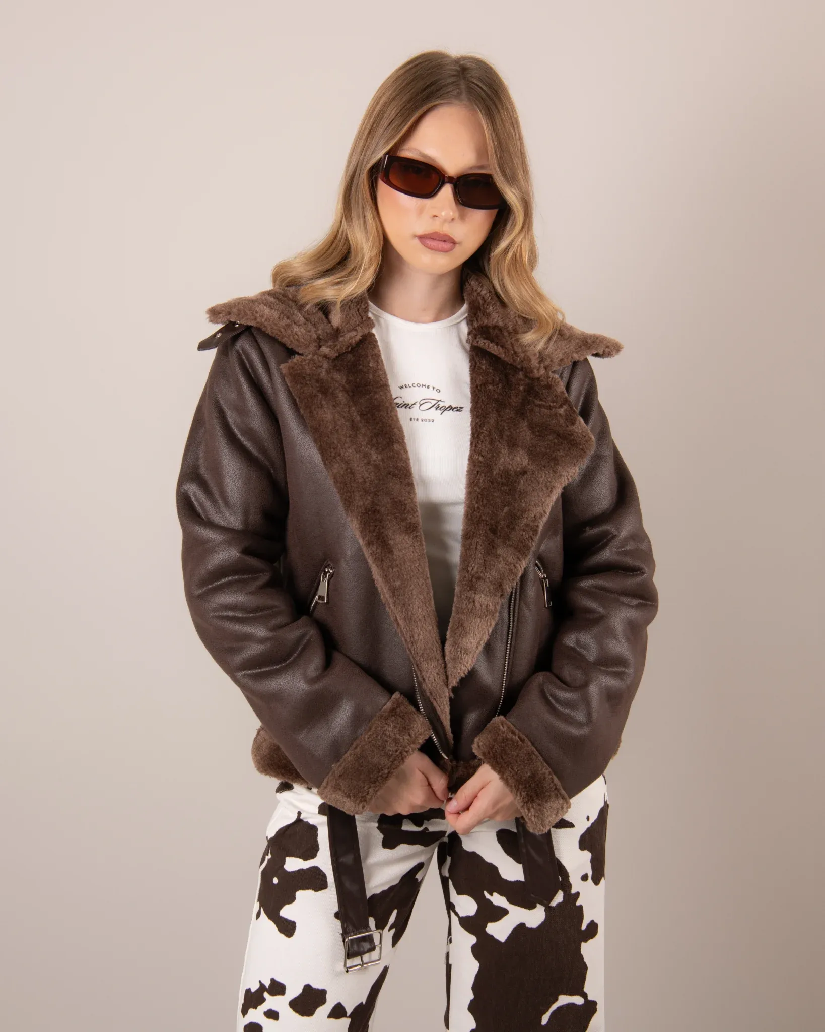• Dos mujeres vestidas de color marrón posan en un bar, una apoyada en la barra y la otra de pie junto a ella. Dos mujeres vestidas de color marrón posan en un bar, una apoyada en la barra y la otra de pie junto a ella.